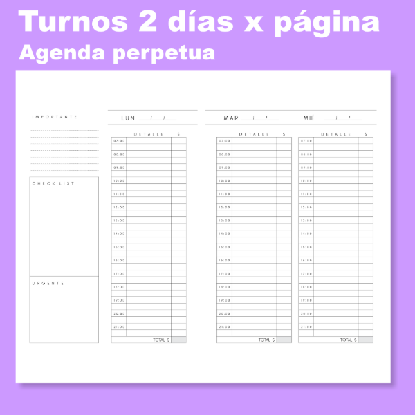 Tiempo de producción de la agenda es de 5 días hábiles (es decir que los fines de semana y feriados no cuentan)